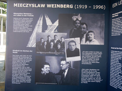 There is an open air exhibition about the life and work of Moisey Weinberg. It's set on a perfect spot so that many people can see it and that they can stop and read about this man's fascinating life without clogging the flow of people in/out the Festival area.