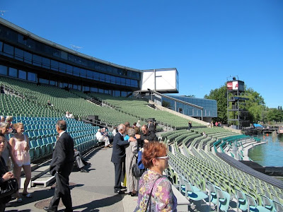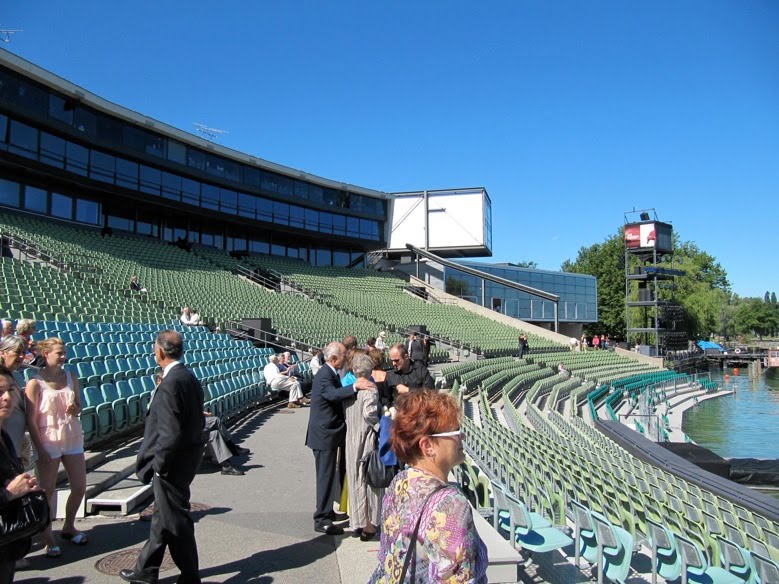 and the public is placed in what looks like a chunk of the swimming stadium, which leans against the back of their beautiful Festspielhaus. Here is how it looks