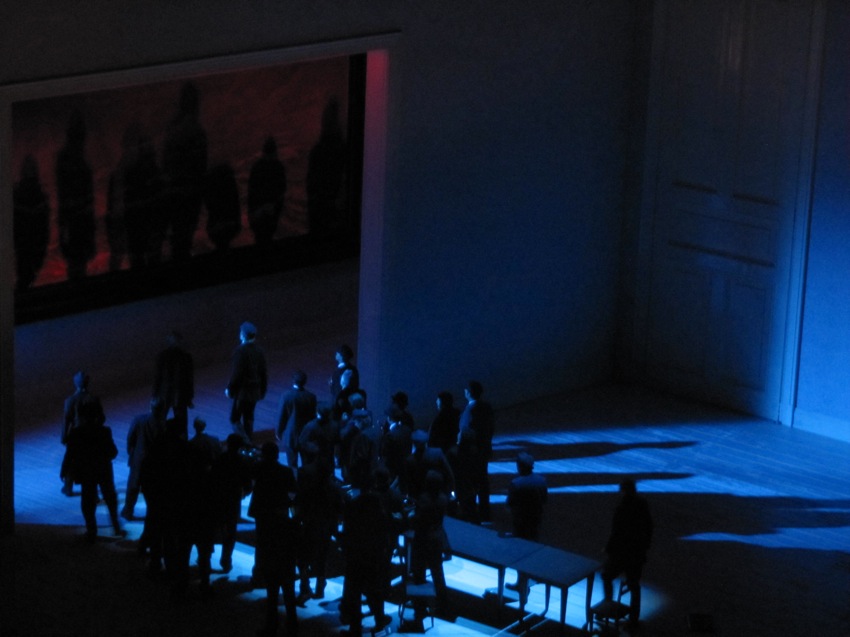 So it all looks nice and interesting, but in reality the show is slow. It's progressing too slowly and the monotony sets in after 30 minutes or so. As in all Willy Decker's productions the light effects are explored impeccably. When the doors open the blue/sea light enter the white room. Towards the end when the ghostly creatures appear, they appear on the painting that is all red-illuminated, while the stage is immersed in the blue light.